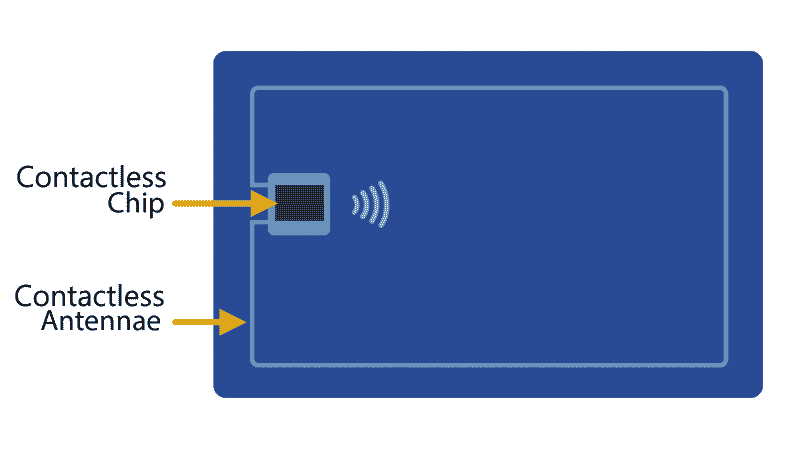 在卡的内部,芯片和天线会与销售点终端进行通信,以发送加密的交易数据。