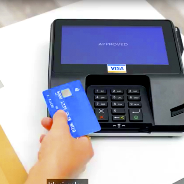 持卡人可以在支持非接触式支付的结帐终端将卡平放并轻触,以使用非接触式卡进行支付。处理该支付所用的动态安全技术与处理芯片卡支付的技术相同,交易时间只需几秒。